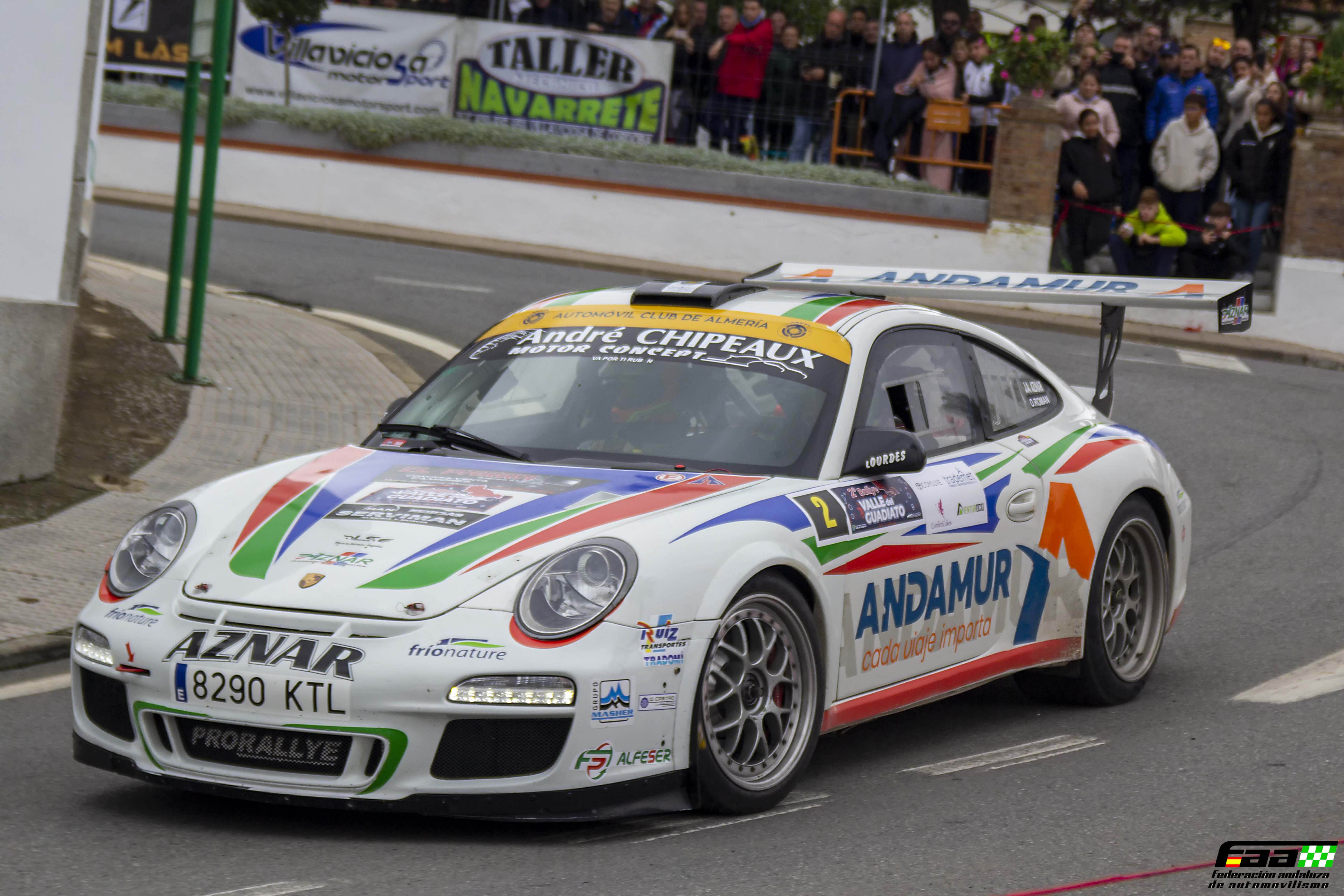 Se trataba de una combinación de resultados difícil, para la que era imprescindible conseguir el triunfo en el rallye, así que Aznar y su copiloto salían decididos en busca de la victoria. Pese a las cambiantes condiciones atmosféricas que afectaban a la prueba desde el principio y beneficiaban a los vehículos de tracción total frente a su Porsche, propulsado sólo por el eje trasero, el piloto del Automóvil Club de Almería era el más rápido en tres de las cinco primeras especiales y lideraba la competición desde la segunda, alcanzando la asistencia del mediodía con casi medio minuto de ventaja sobre el Hyundai i20 R5 de los extremeños Casimiro y Pérez. Además. Con López Mañas ocupando la décima posición ,tras haber sufrido un toque, y Coca la vigésimo séptima, la consecución del título de pilotos todavía era posible.