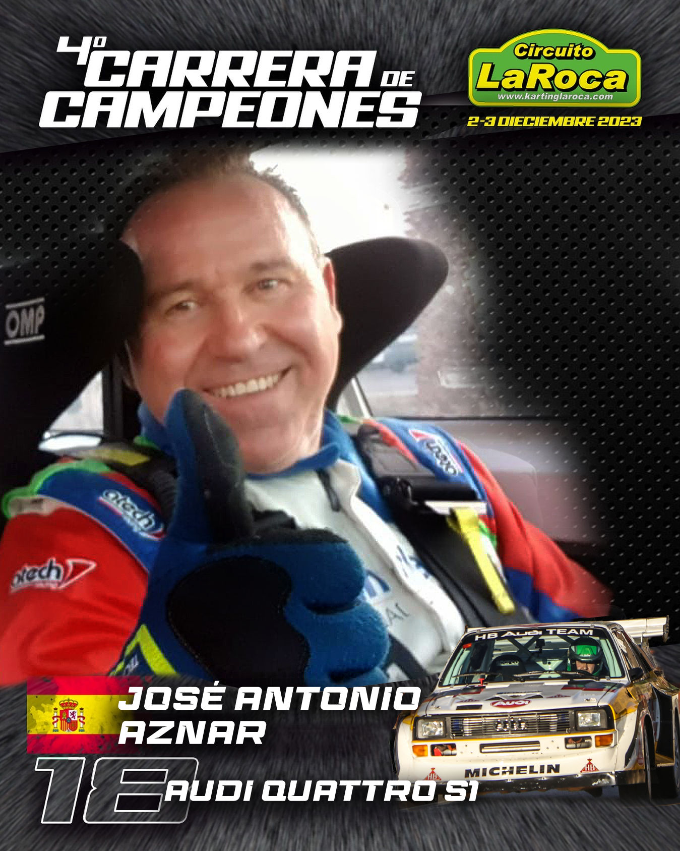 José Antonio Aznar será uno de los protagonistas este fin de semana en la cuarta edición de la Carrera de Campeones del Circuito La Roca, en Quijas (Cantabria). El piloto almeriense pilotará su espectacular Audi Quattro S2 en la competición del trazado cántabro regentado por la familia Sordo, que en pocos años se ha convertido en todo un clásico como cita de cierre de la temporada con la presencia de pilotos de diferentes especialidades del mundo del motor.